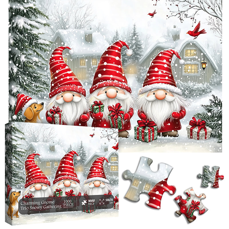 Charmantes Gnom -Trio Snowy Gathering Jigsaw Rätsel 1000 Stücke